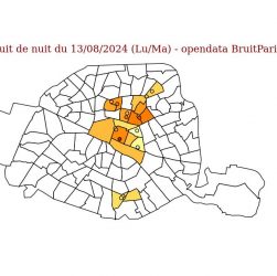 Observatoire du bruit pour Paris, nuit du 11/08/2024 Données issues de l’opendata BruitParif Nuit du 11/08/2024 (Sa/Di), sur 17 sites …
