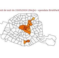 Observatoire du bruit pour Paris, nuit du 23/05/2024 Données issues de l’opendata BruitParif Nuit du 23/05/2024 (Me/Je), sur 12 sites …