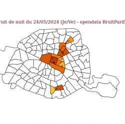 Observatoire du bruit pour Paris, nuit du 24/05/2024 Données issues de l’opendata BruitParif Nuit du 24/05/2024 (Je/Ve), sur 12 sites …