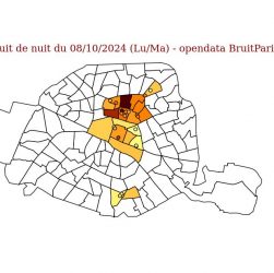 Observatoire du bruit pour Paris, nuit du 08/10/2024 Données issues de l’opendata BruitParif Nuit du 08/10/2024 (Lu/Ma), sur 20 sites …