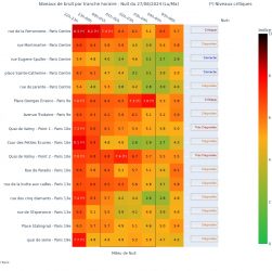 Observatoire du bruit pour Paris, nuit du 24/08/2024 Données issues de l’opendata BruitParif Nuit du 24/08/2024 (Ve/Sa), sur 16 sites …