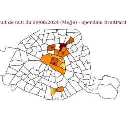 Observatoire du bruit pour Paris, nuit du 29/08/2024 Données issues de l’opendata BruitParif Nuit du 29/08/2024 (Me/Je), sur 16 sites …